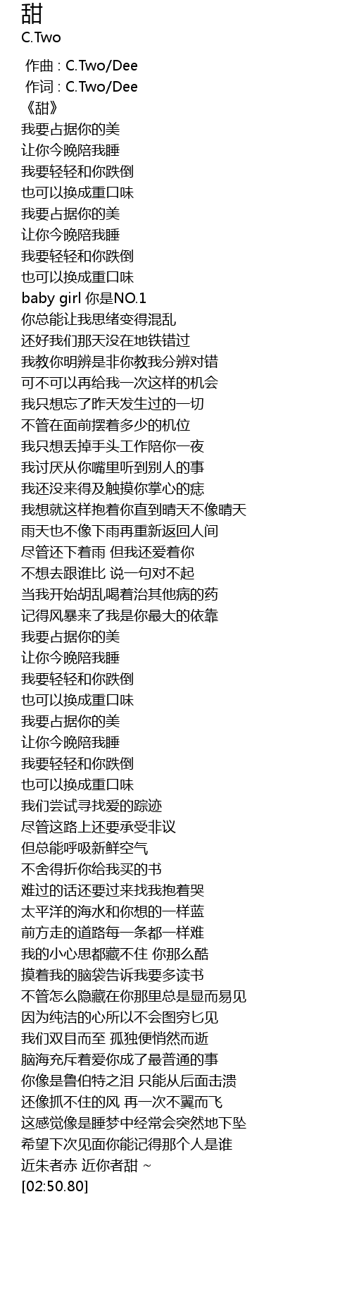 | [00:01.000] | 作词 : C.Two/Dee |