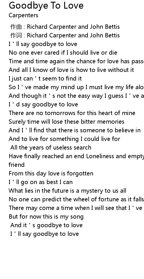 | [02:10.200] | And it s goodbye to love |