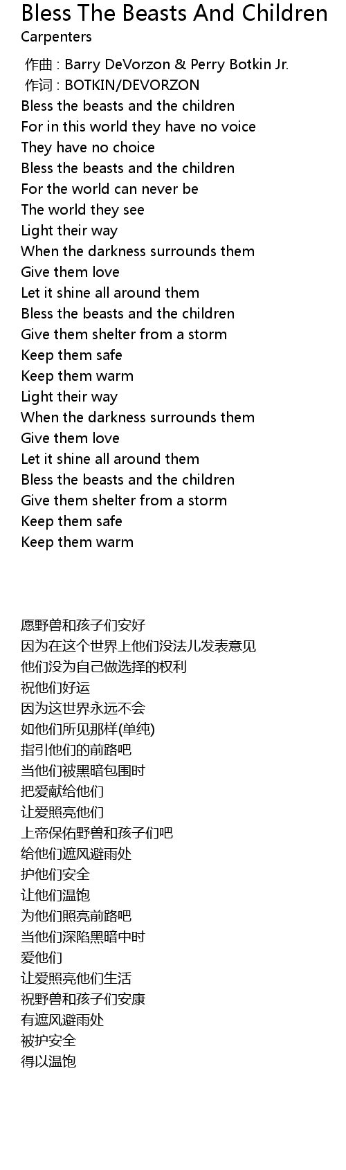 | [00:12.53] | Bless the beasts and the children |