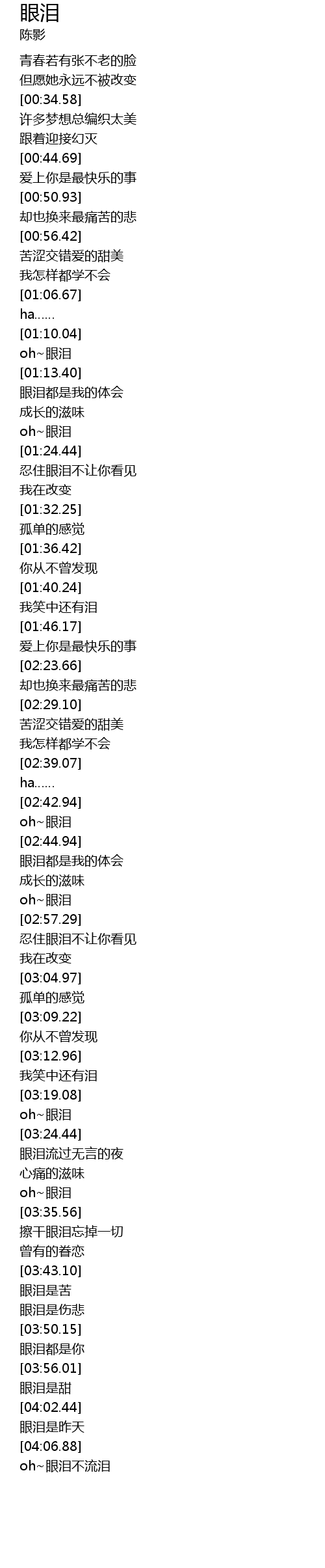 | [03:32.68] | oh~眼泪 |