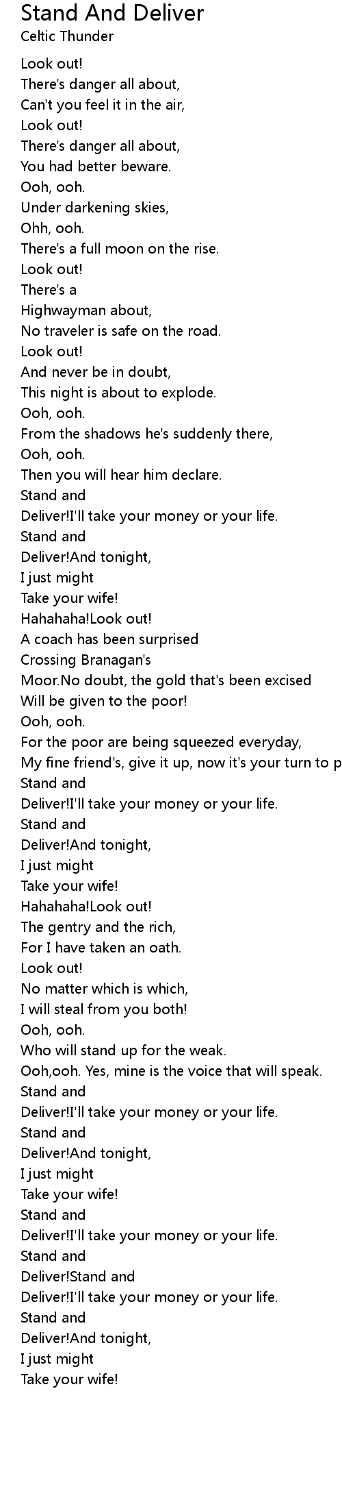 Deliver!I'll take your money or your life. |