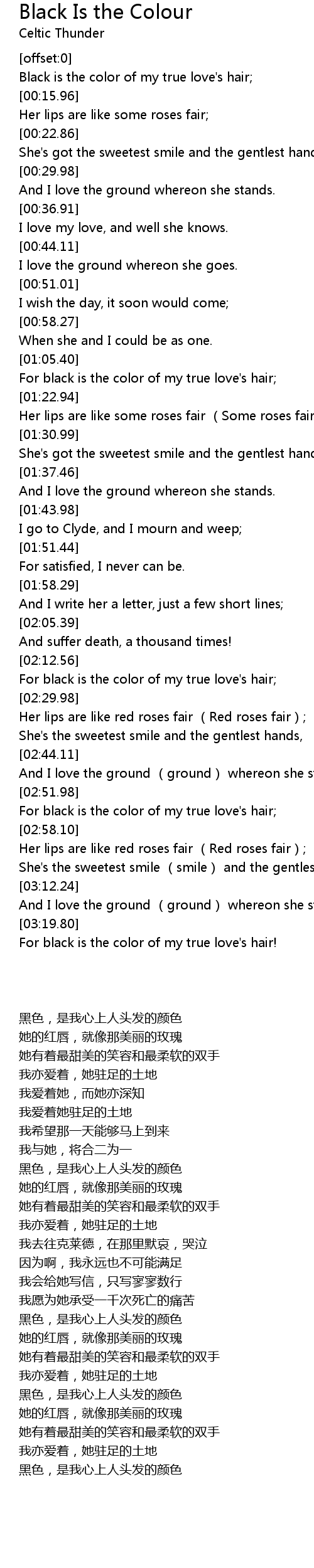 | [03:20.94] | For black is the color of my true love' s hair! |