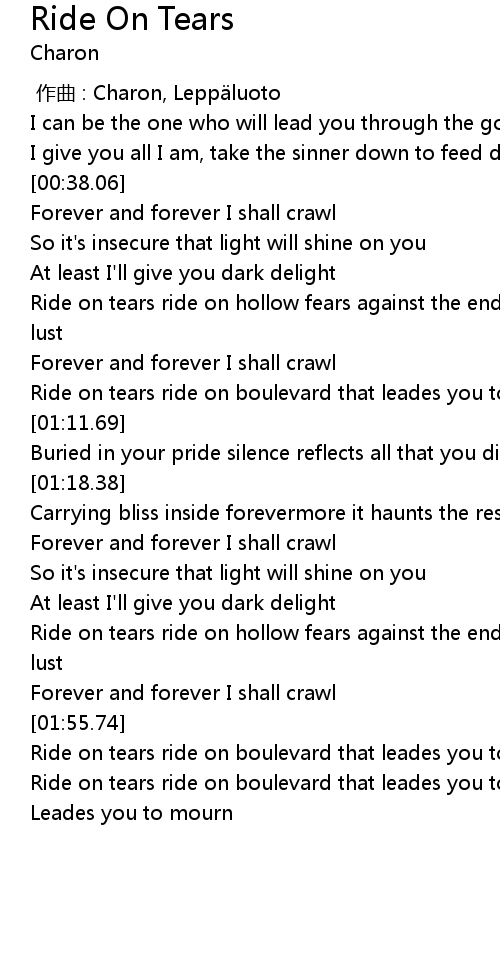 | [01:01.75] | Ride on tears ride on boulevard that leades you to mourn |