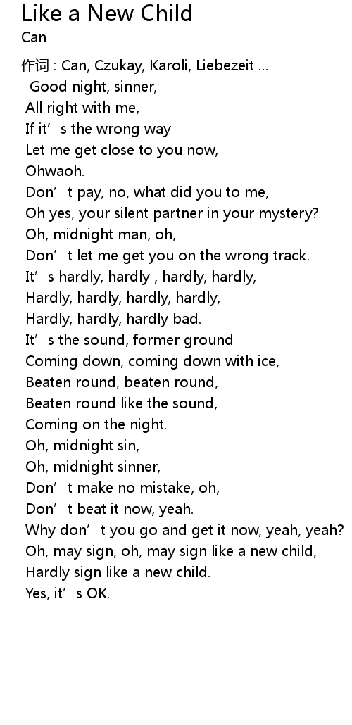 | 作词 : Can, Czukay, Karoli, Liebezeit ... | |