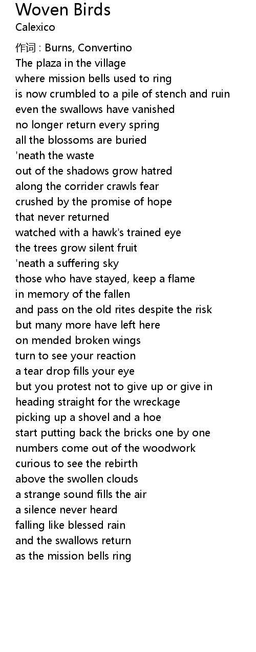 | Song | Woven Birds |