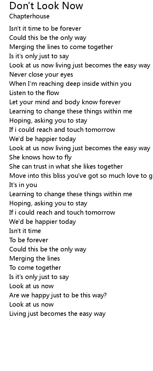 Look at us now living just becomes the easy way |