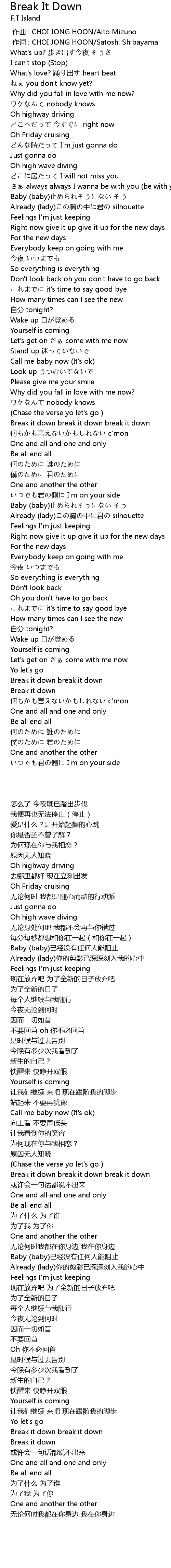 | [00:01.000] | 作词 : CHOI JONG HOON/Satoshi Shibayama |