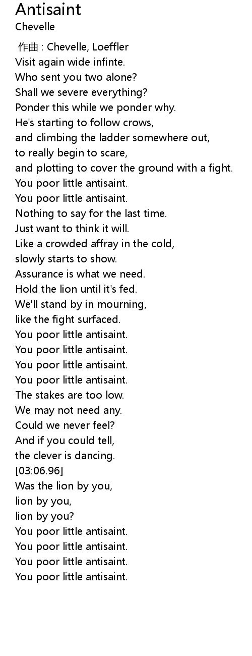 | [02:15.87] | You poor little antisaint. |