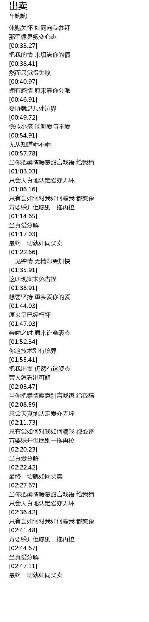 | [01:57.97] | 把我出卖 仍然有这姿态 |