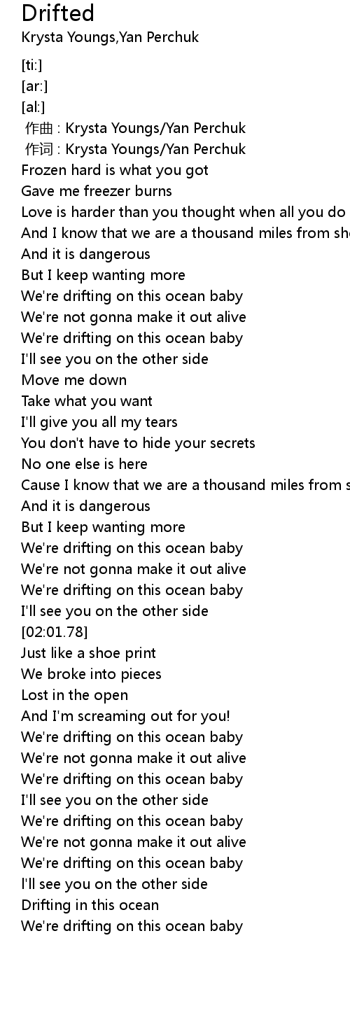 | [00:00.000] | zuo qu : Krysta Youngs Yan Perchuk |
