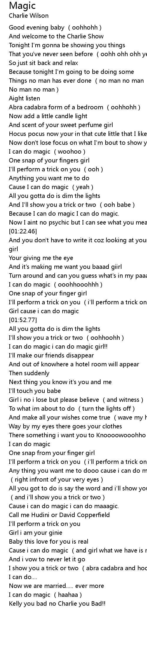 | [03:13.71] | Cause i can do magic and girl what we have is magic ooh |