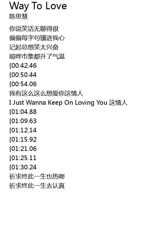 | [02:19.35] | I Just Wanna Keep On Loving You zhe qing ren |