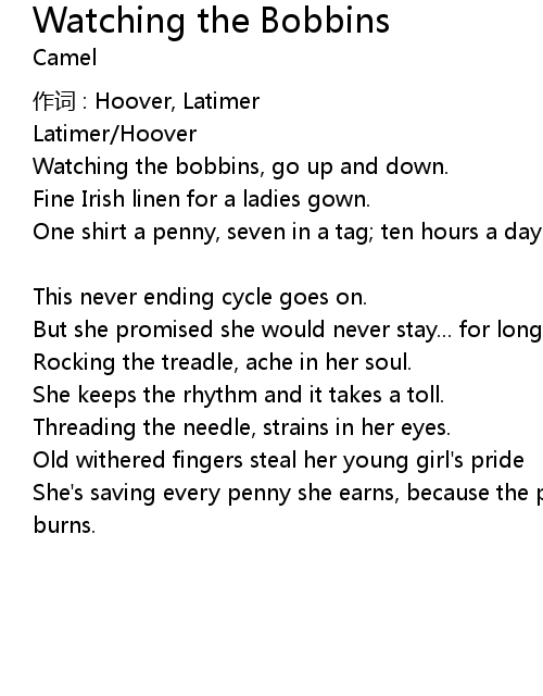 | One shirt a penny, seven in a tag; ten hours a day and her heart begins to drag. | |
