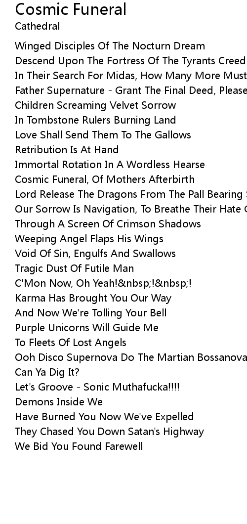 Cosmic Funeral, Of Mothers Afterbirth |