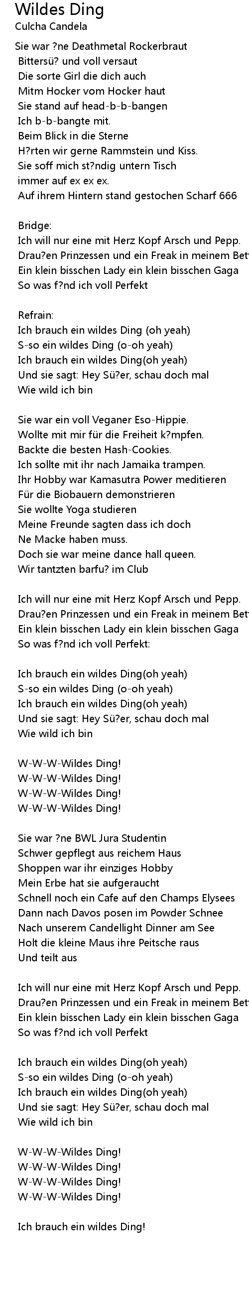 | Ich brauch ein wildes Ding oh yeah | |