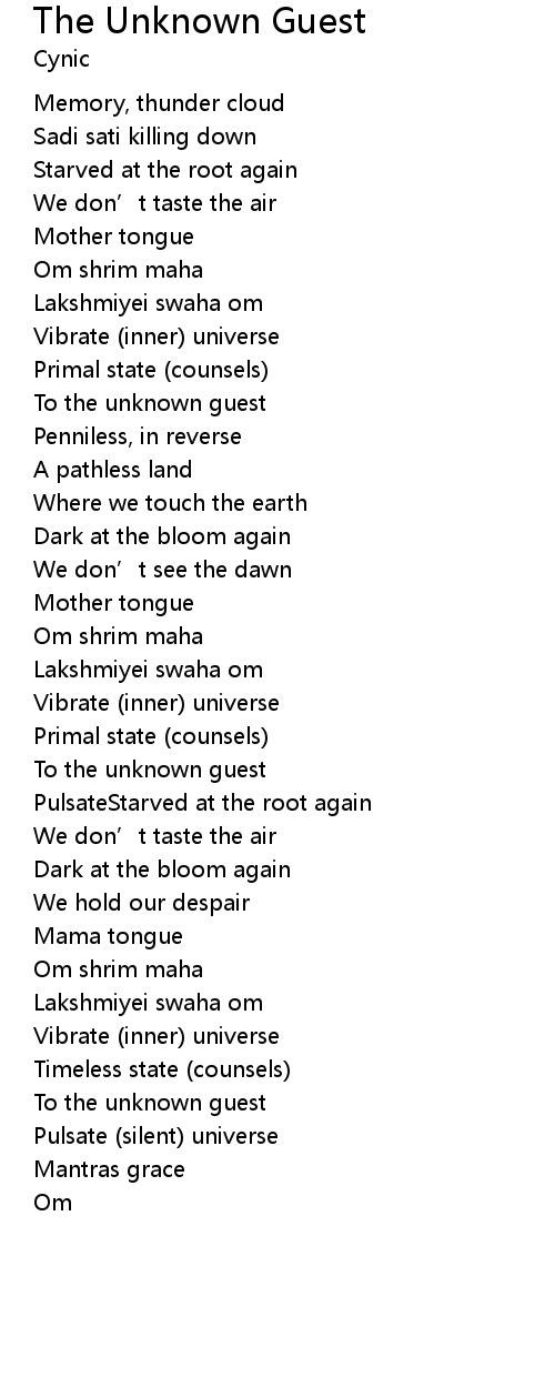 | Song | The Unknown Guest |