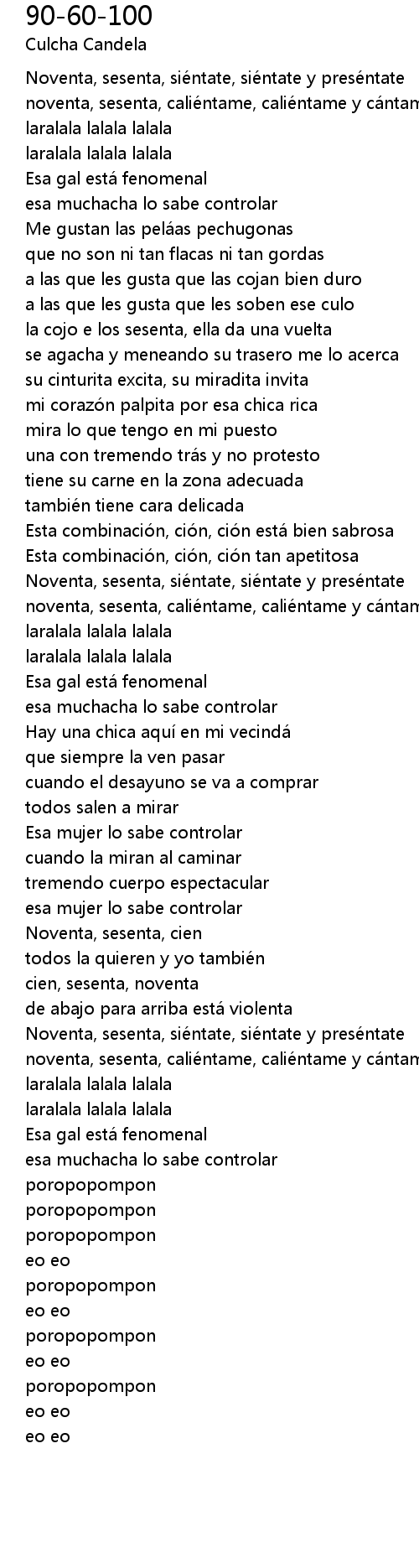 | noventa, sesenta, caliéntame, caliéntame y cántame | |