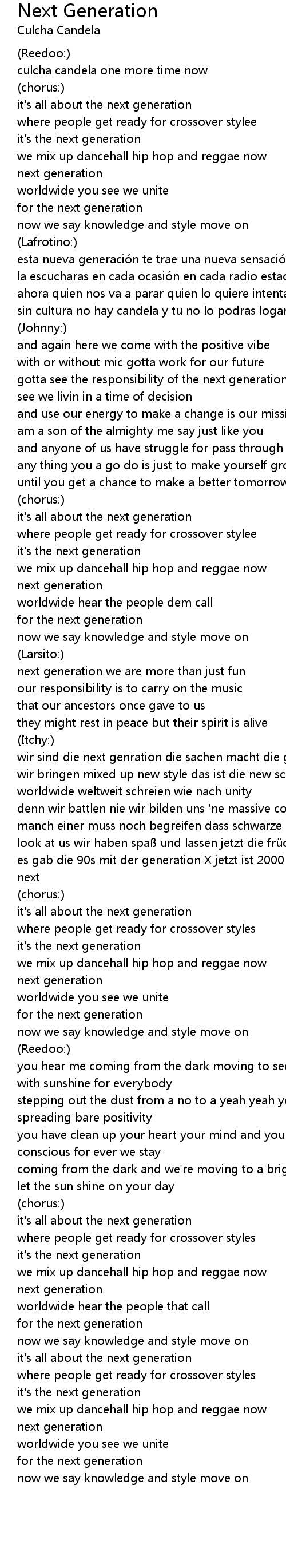 | culcha candela one more time now | |
