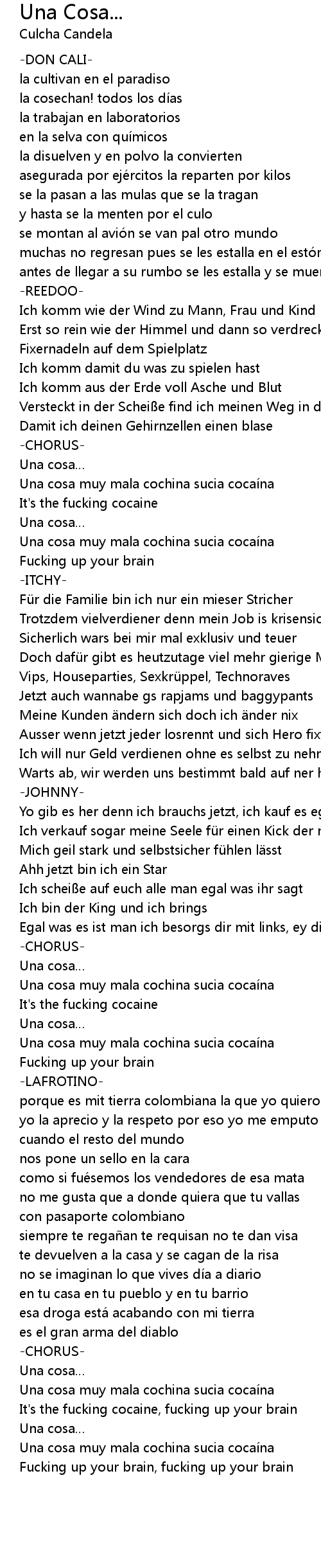 | Una cosa muy mala cochina sucia cocai na | |
