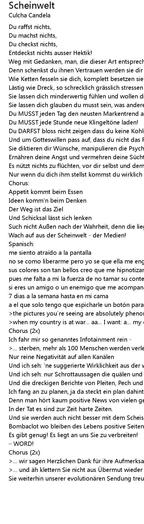 | Und ich seh: ' ne suggerierte Wirklichkeit aus der wir w hlen. | |