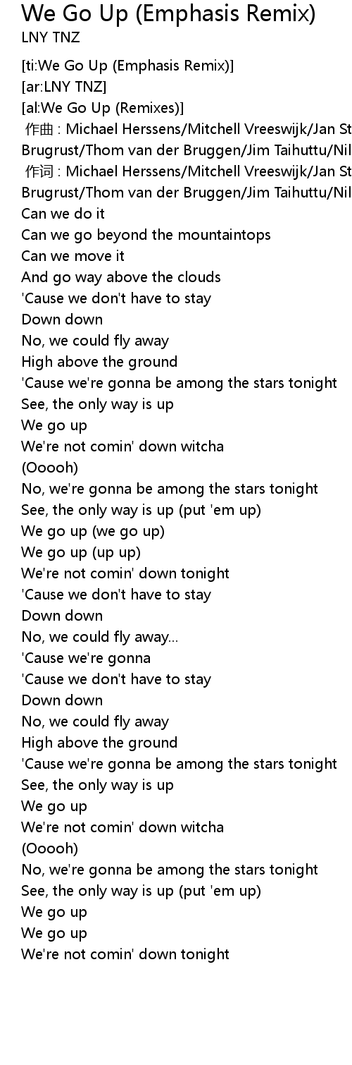 | [02:13.35] | See, the only way is up (put 'em up) |