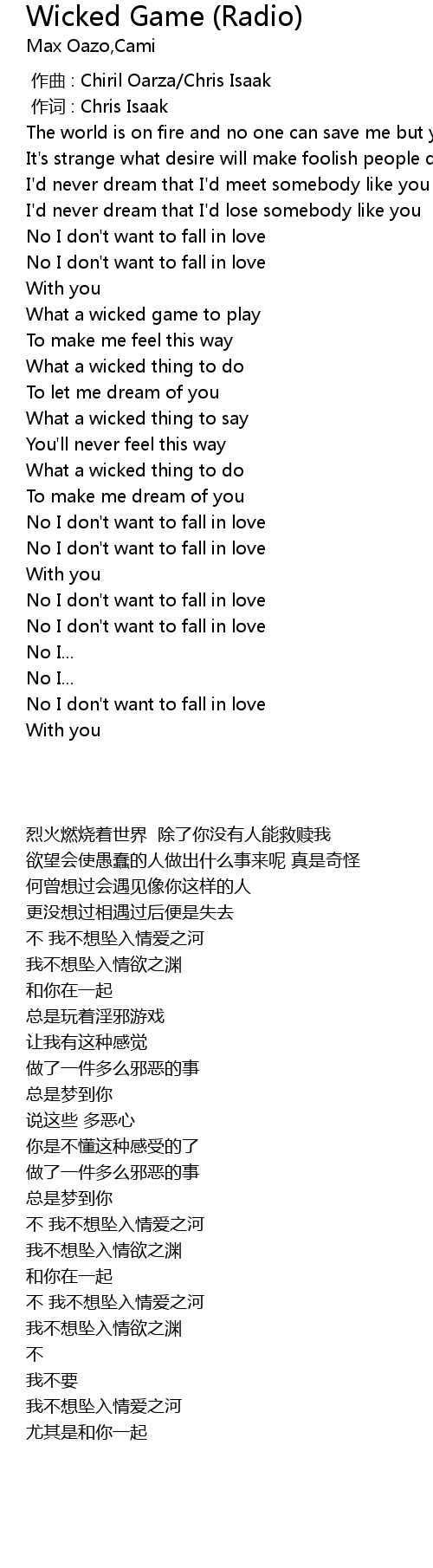 | [01:40.663] | What a wicked game to play |