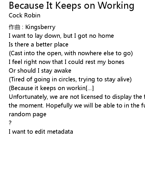 | Song | Because It Keeps on Working |