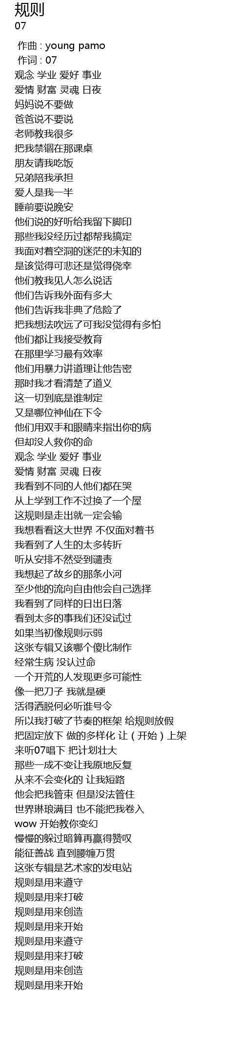 | [02:29.106] | guī zé shì yòng lái dǎ pò |