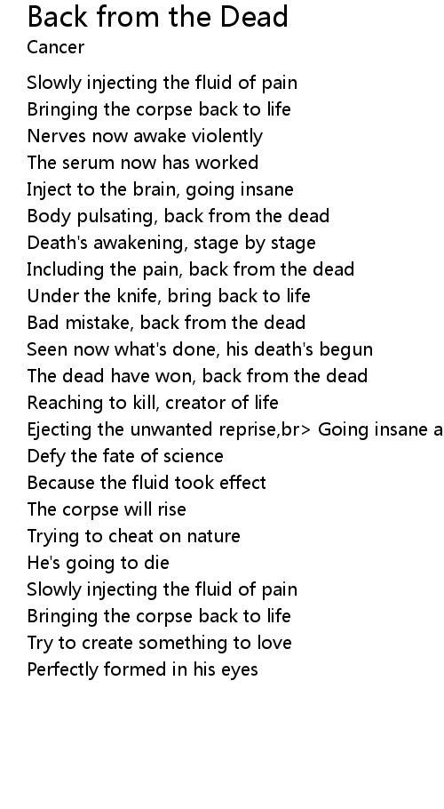 The dead have won, back from the dead |