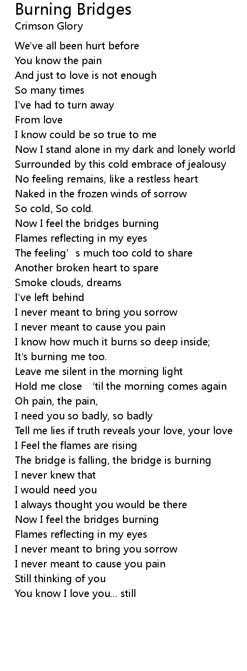 | Now I feel the bridges burning | |