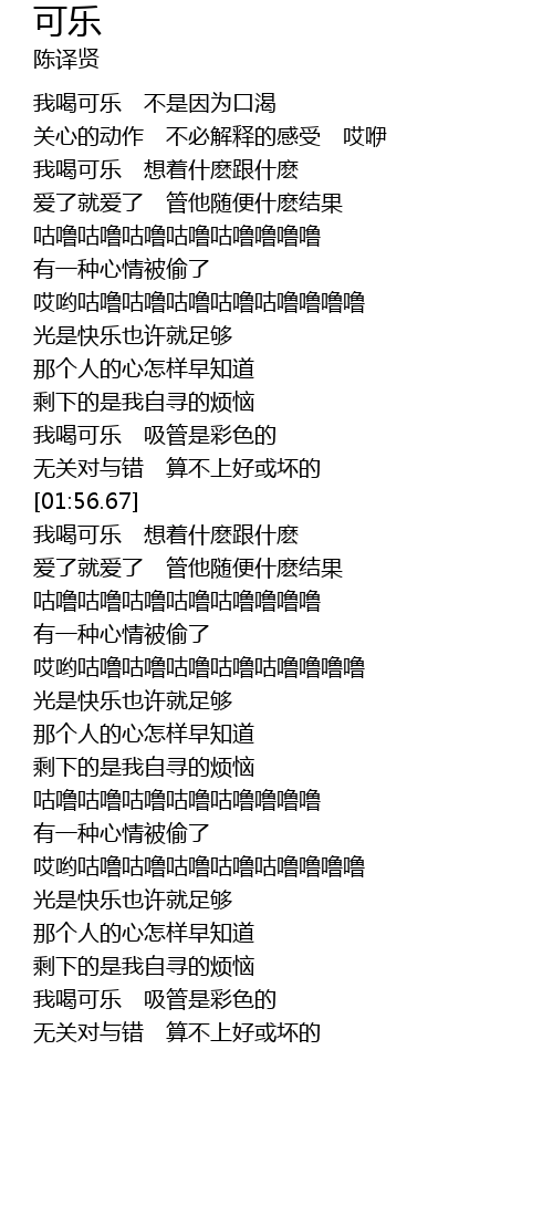 | [01:31.39] | 我喝可乐 吸管是彩色的 |