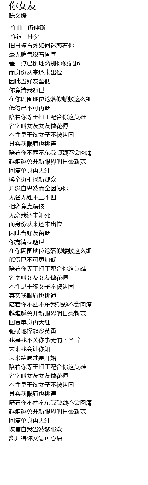 | [00:49.51] | 名字叫女友女友做花樽 |