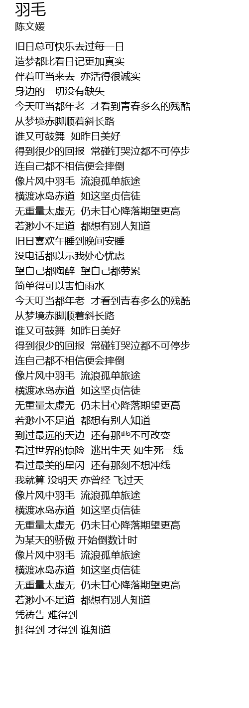 | Song | 羽毛 |