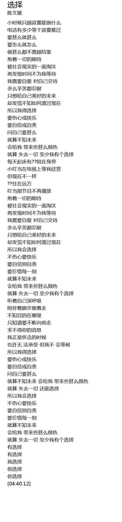 | [03:40.29] | jiù suàn shī qù yī qiè hái néng xuǎn zé |