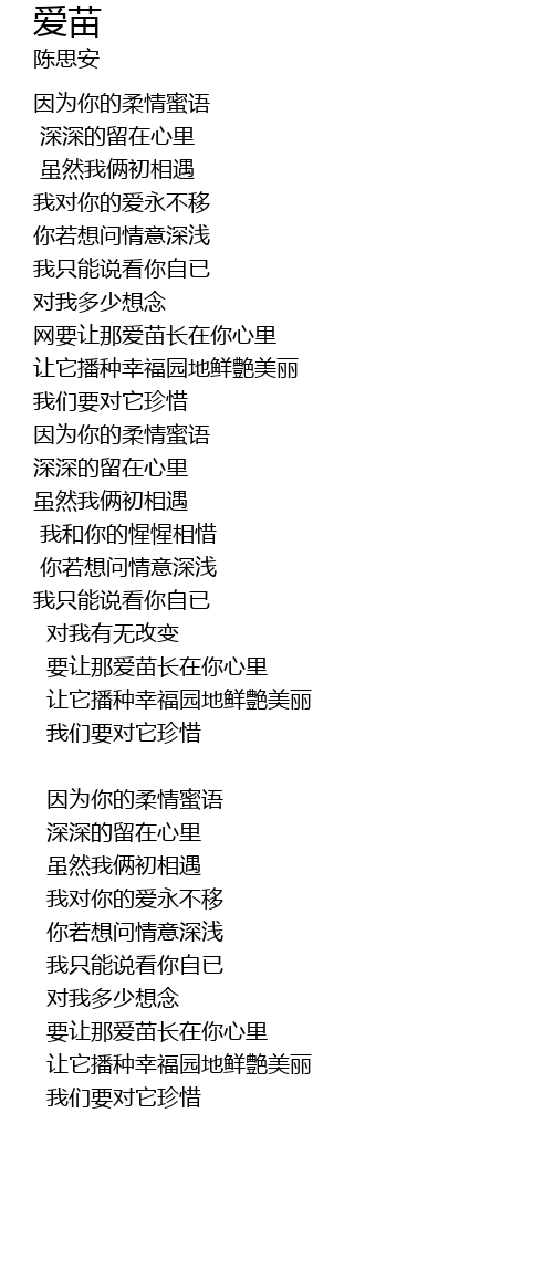 | Song | 爱苗 |