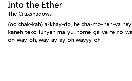 | (oo chak-kah) a-khay-do, he cha-mo-neh-ya hey-ma kayo-maneh-hey sto-ma kaneh-teko-lunyeh ma-yu, nome-ga-ye-fe no-way-oh, wayyy oh-wayyy-oh wayyy oh-way-oh, way-ay-ay-oh wayyy-oh |