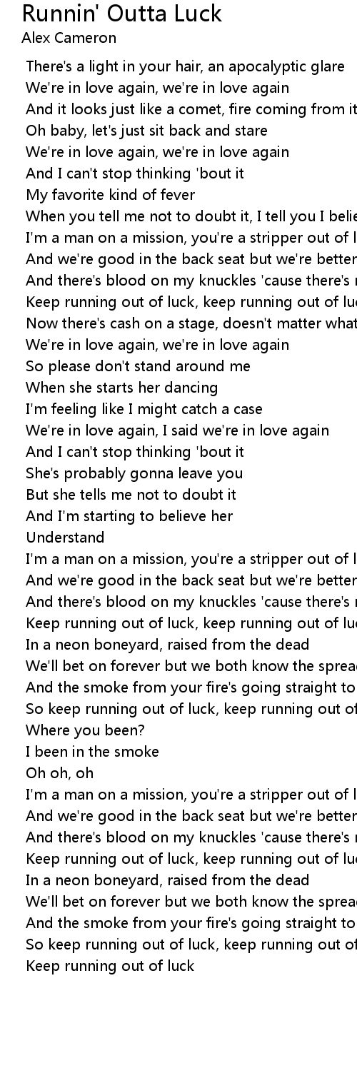 So keep running out of luck, keep running out of luck |