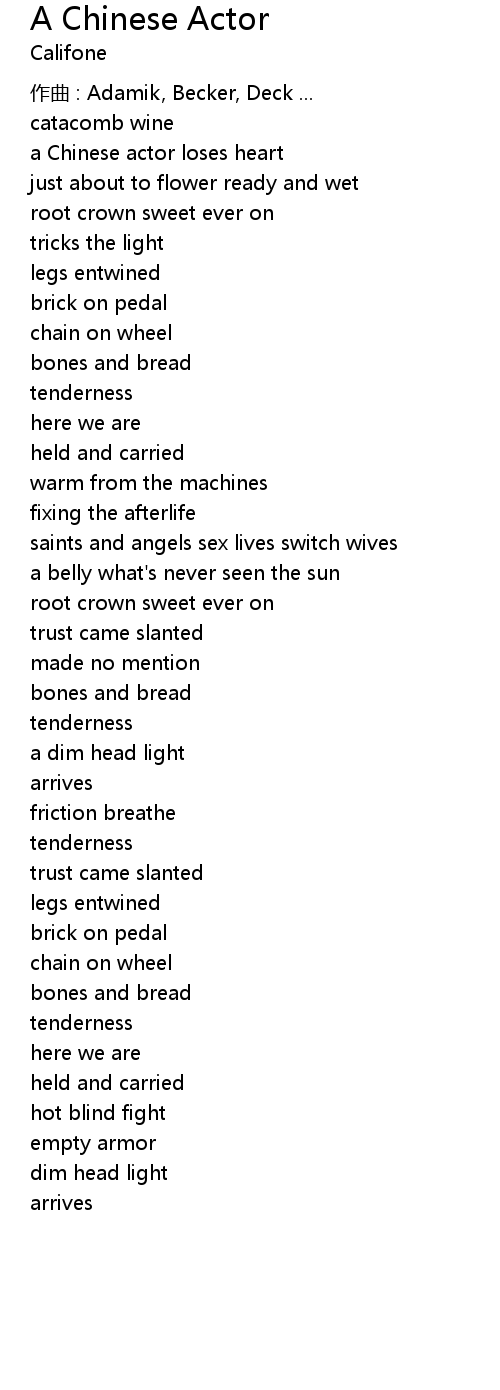 | Song | A Chinese Actor |
