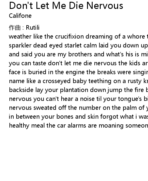 | Song | Don't Let Me Die Nervous |