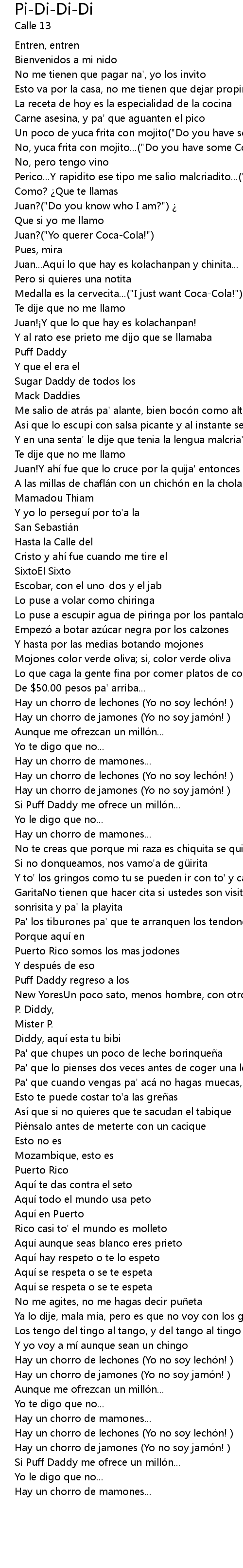 | Y en una senta' le dije que tenia la lengua malcria'("Do you know who I am?") ¡ | |