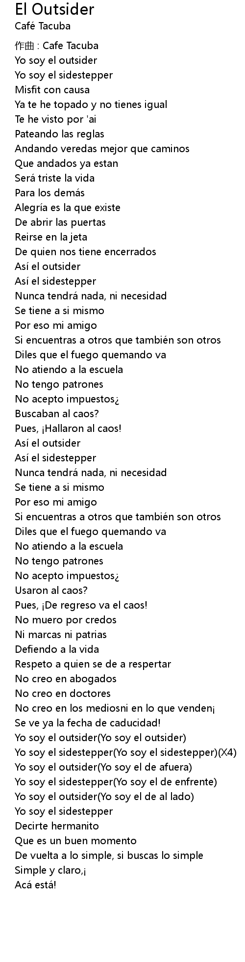 | Yo soy el outsider(Yo soy el de afuera) | |