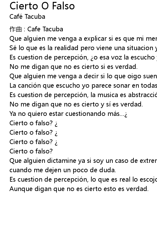 | Song | Cierto O Falso |