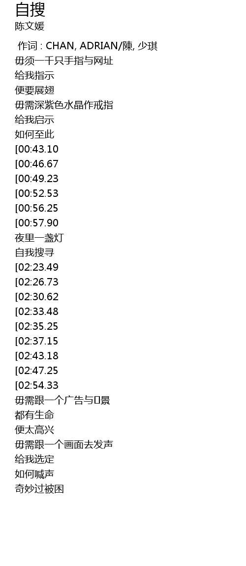 | [02:21.59][00:57.90] | 自我搜寻 |