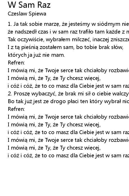 | I z tą pieśnią zostałem sam, bo tobie brak słów, | |