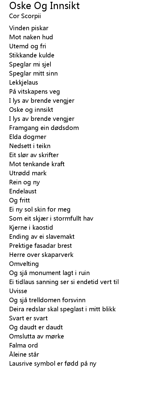 | Song | Oske Og Innsikt |