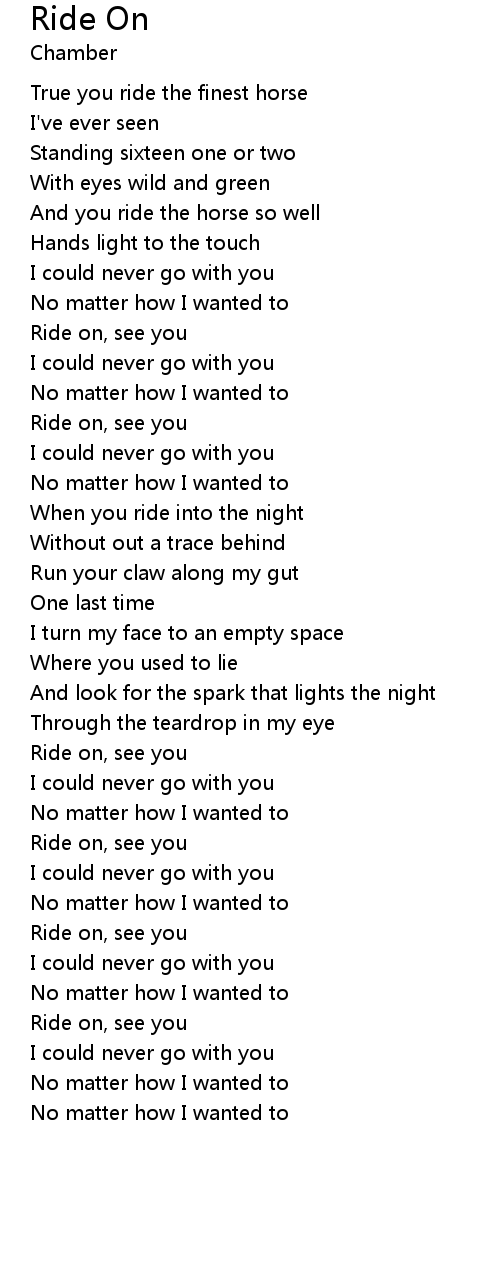 | [00:14.60] | True you ride the finest horse |