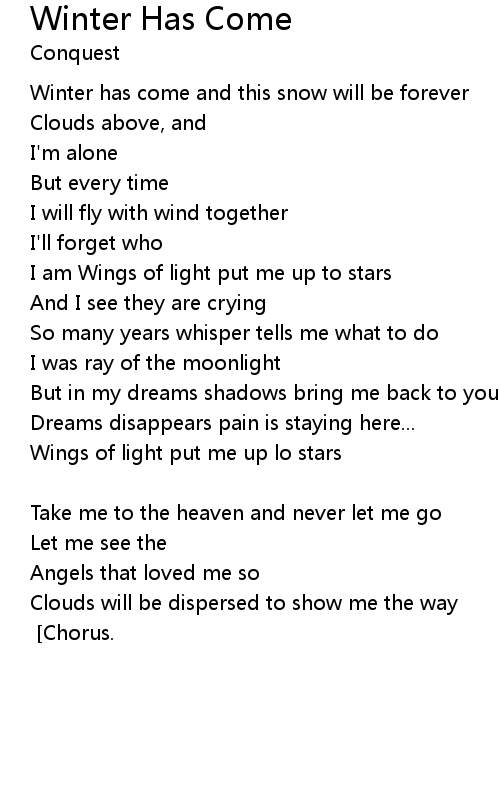 Wings of light put me up lo stars |