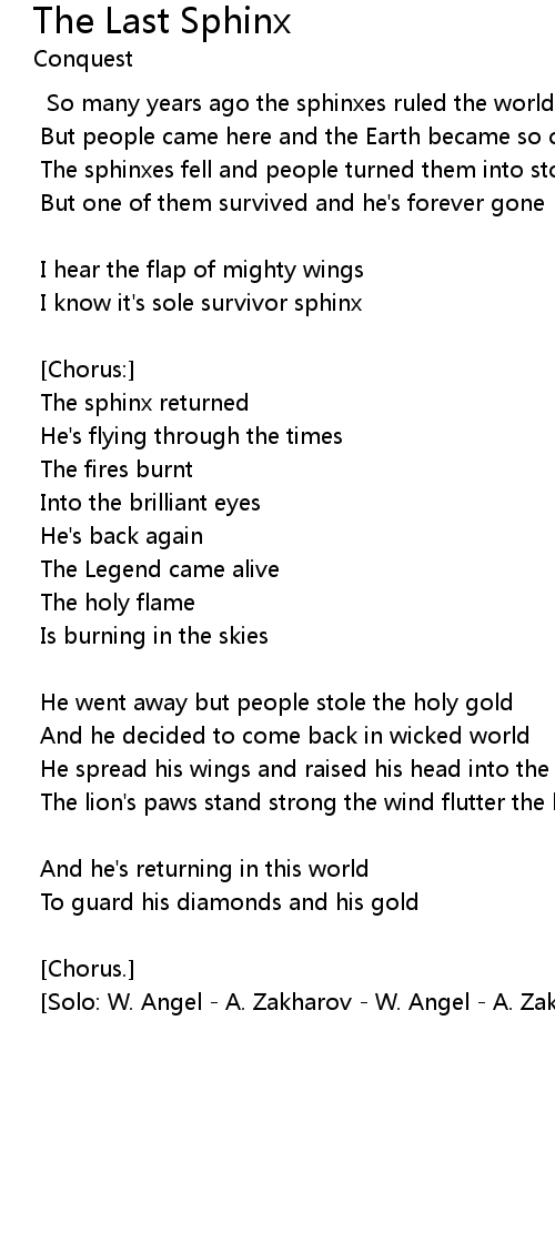 So many years ago the sphinxes ruled the world |