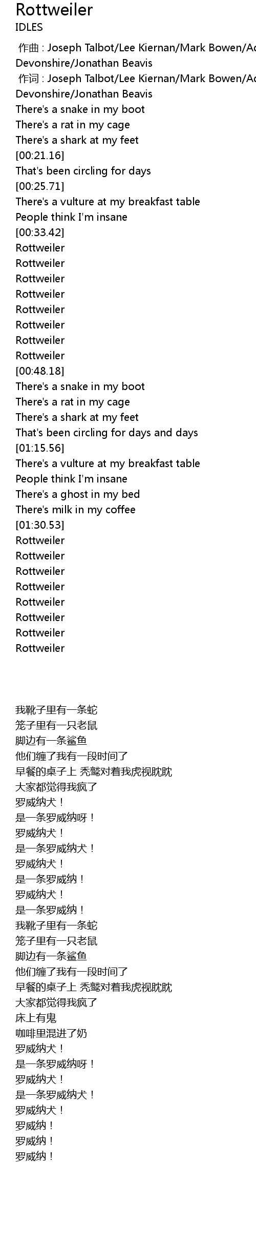 | [01:33.17] | Rottweiler |