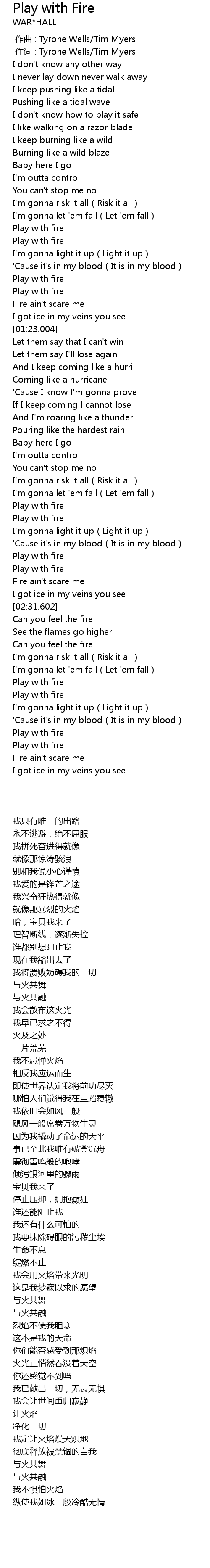 | [01:00.565] | Play with fire |